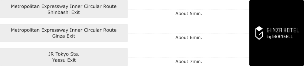 从首都高速都心环状线出口“新桥”出发约5分钟