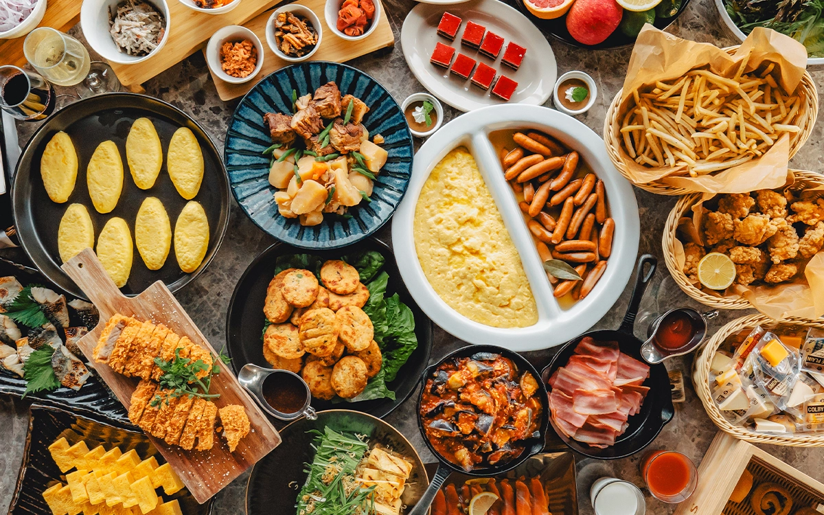 享用自助餐来度过健康的早晨,自助餐包括沙拉、面包、鸡蛋菜肴和水果等经典的日式和西式菜肴。