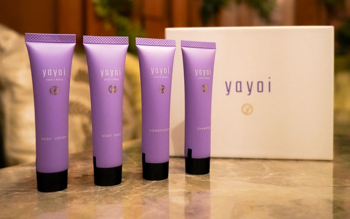 为您特别准备了一流酒店也引进的美体护理品牌“yayoi”的洗浴用品4件套 (洗发水、护发素、沐浴露、润肤霜) 。