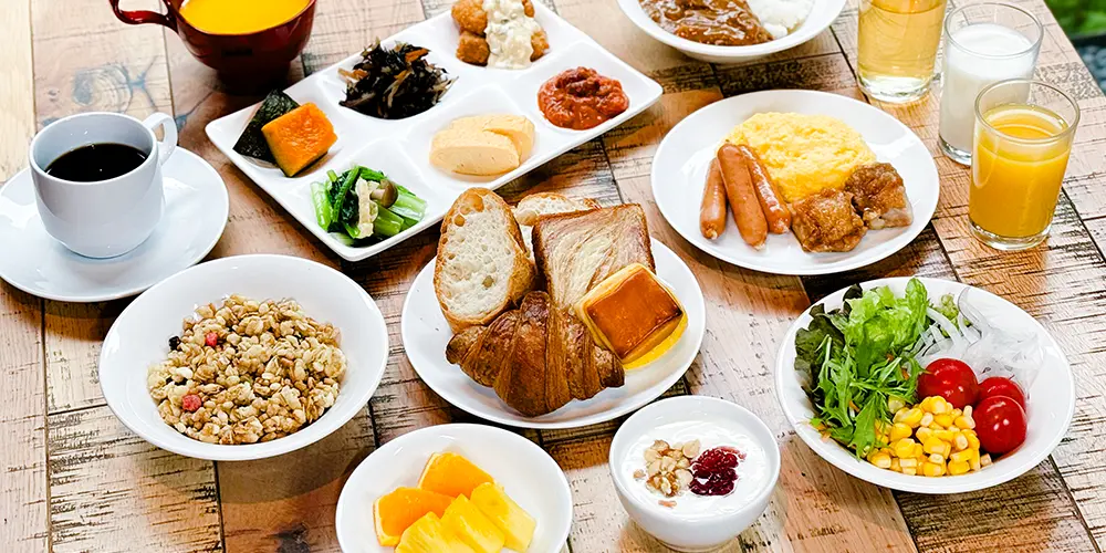 以美味的早餐开始美好的京都逗留一天吧。兼任日本各地有名旅馆、高级酒店的本酒店总厨师长监修。为您准备了包括受欢迎的“京都家常菜”在内的日西式自助餐。使用当地特有的食材,每一道菜都精心制作,有30种以上的丰富菜品供您享用。