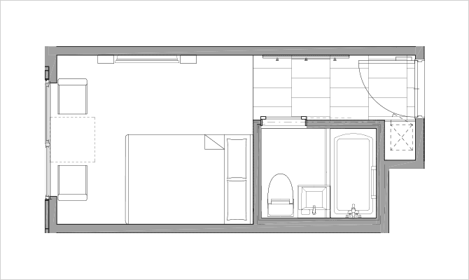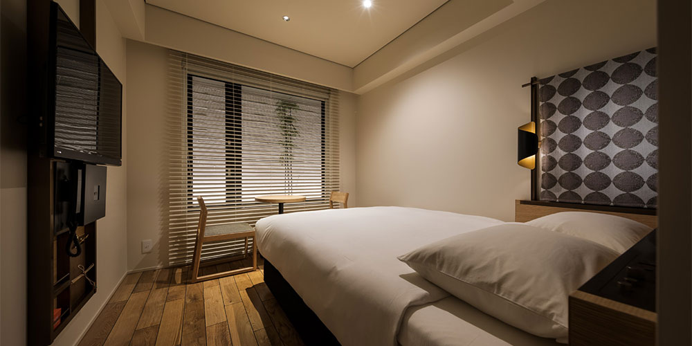 窗外的庭院,充满艺术气息的灯光和一棵竹子的风景营造出日式风情,治愈旅途的疲劳。