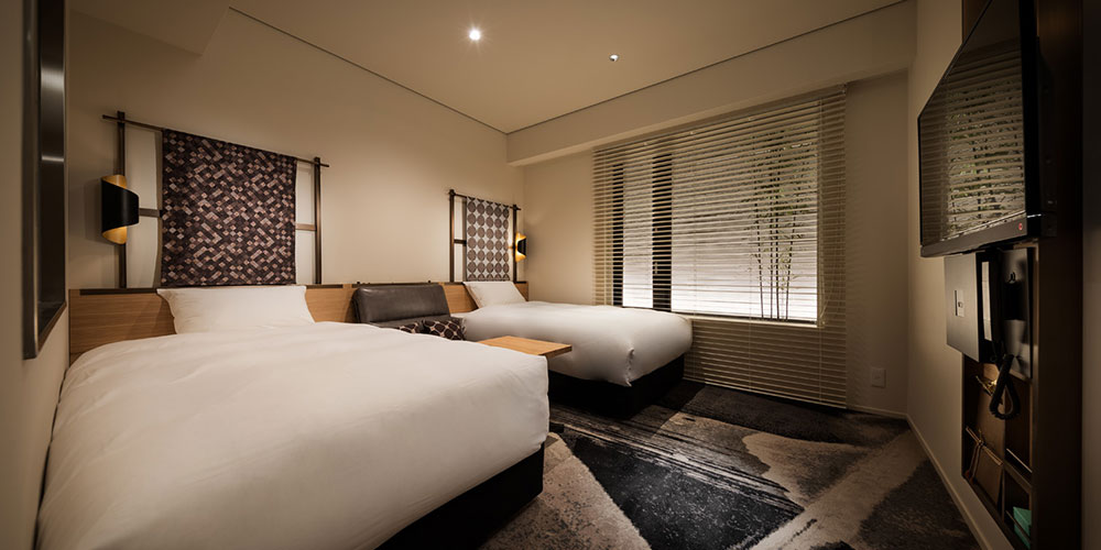 由日本艺术家设计的艺术地毯与和服图案的艺术头板迎接宾客的到来,为您提供能让京都之旅更具京都特色印象的世界观与场景。