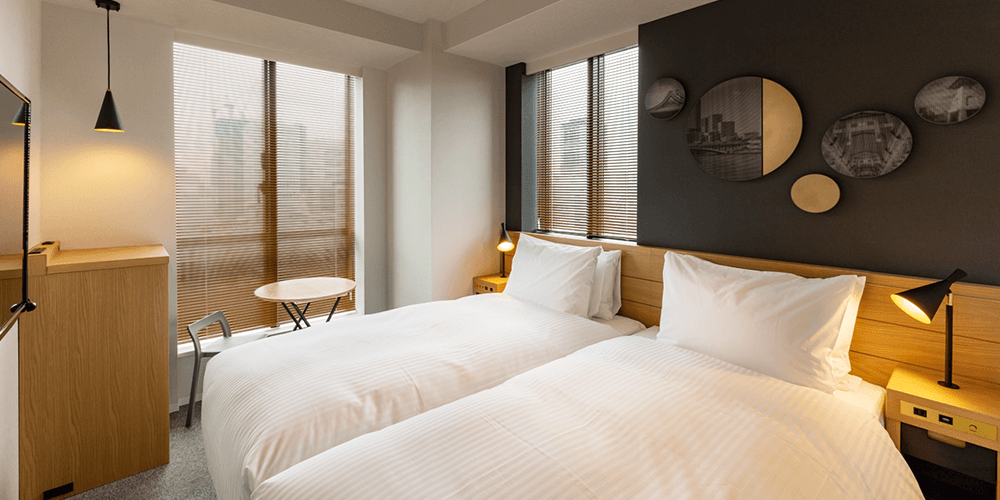 双床间位于4至18层。这些好莱坞双床间床铺之间没有缝隙,即使带小孩的家庭也能睡得舒适。床下还有储物空间,方便存放行李箱和其他物品。