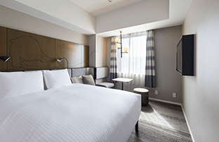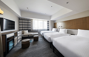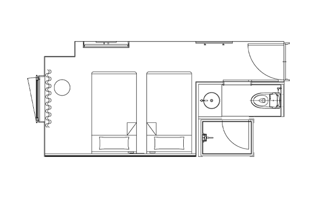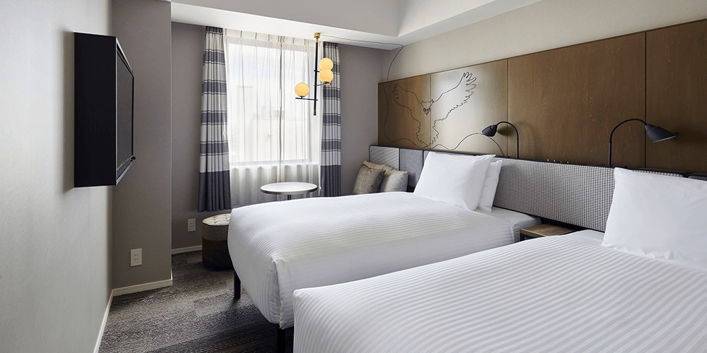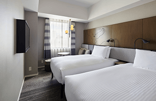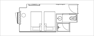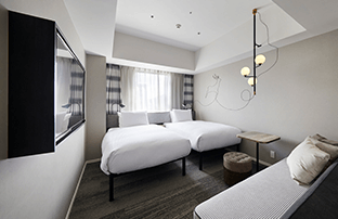 适用于观光、商务和其他私人住宿。简单实用的双床房可用于各种场合。床下空间可用于存放行李箱等。