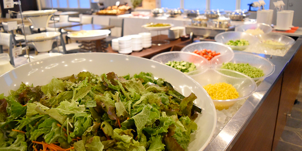在繁忙的日常饮食生活中容易不足的蔬菜,可以以自助餐的形式尽情享用。沙拉种类丰富,有蔬菜沙拉、卷心菜、西红柿、玉米、红辣椒、黄瓜、水菜、洋葱片、土豆沙拉等。
