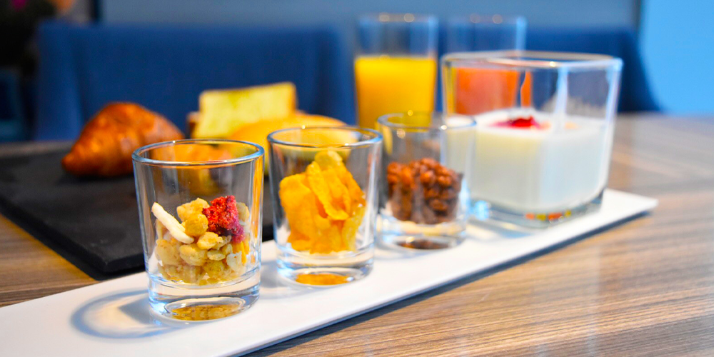 设计师亲手设计的全玻璃店内,晴天时能远眺到令人心情舒畅的景致。请在美味的早餐和舒适的空间里享受一天的开始。